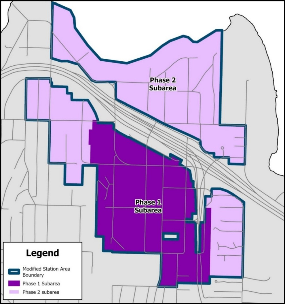 Preliminary Modified Station Area and GMA Compliance Phase 1 and Phase 2 Subareas.