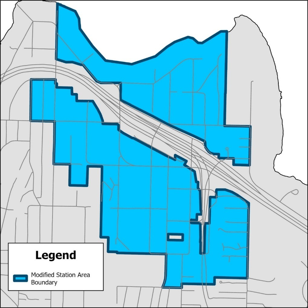 The City is allowed to designate a modified station area, subject to review and approval by the Washington State Department of Commerce (RCW 36.70A.840). Some areas may be exempted from the station area, such as the shoreline jurisdiction, critical areas, and parks. The City Council will be providing further direction on the boundary of a modified station area in the coming weeks. -